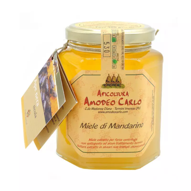 Apicoltura Carlo Amodeo ponosi se proizvodnjom najfinijeg i najtipičnijeg sicilijanskog meda, koji proizvodi autohtona sicilijanska pčela, sicilijanska crna pčela (Apis mellifera siciliana), koja je postala prezidij Slow Food-a . Imajte na umu da se informacije o gustoći i boji meda opisane na ovoj stranici mogu neznatno razlikovati ovisno o dobu godine.