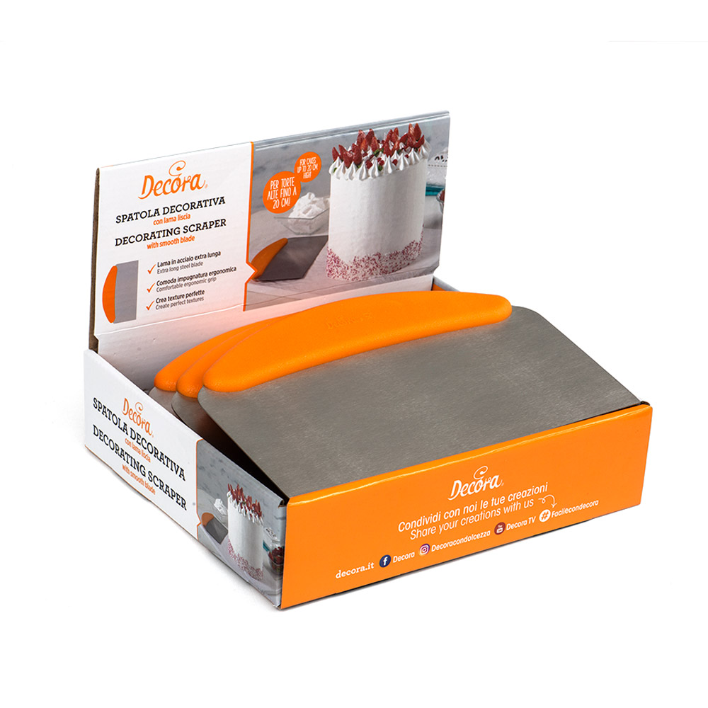 Lopatica od nehrđajućeg čelika s udobnom ergonomskom i neklizajućom ručkom. Valovita lopatica savršena je za ukrašavanje rubova kolača s originalnim teksturama. Oštrica duga preko 20 cm čini ga prikladnim i za vrlo visoke kolače.