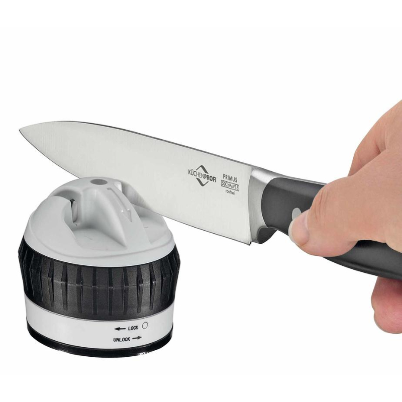 S Küchenprofi Primus oštračem vašim tupim noževima je došao kraj. Dolazi u dva stupnja oštrenja, prvi za izrazito tupe noževe, a drugi za fino i redovito brušenje.
