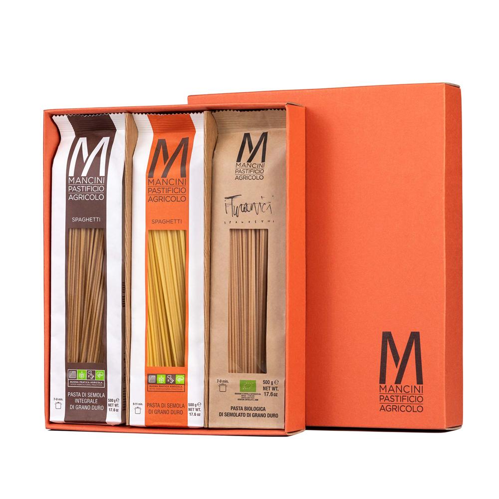 Mancini GIFT.TRE LINEE BOX tjestenina 1,5 kg s organskim proizvodima