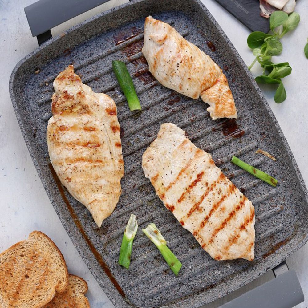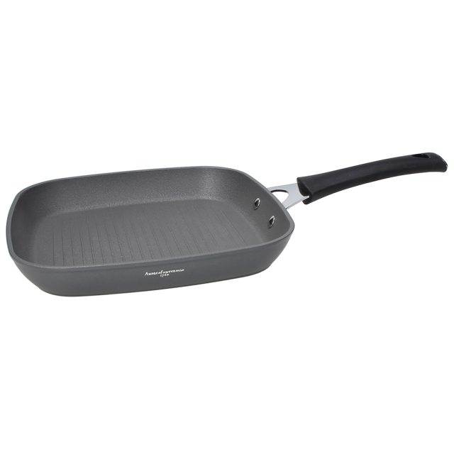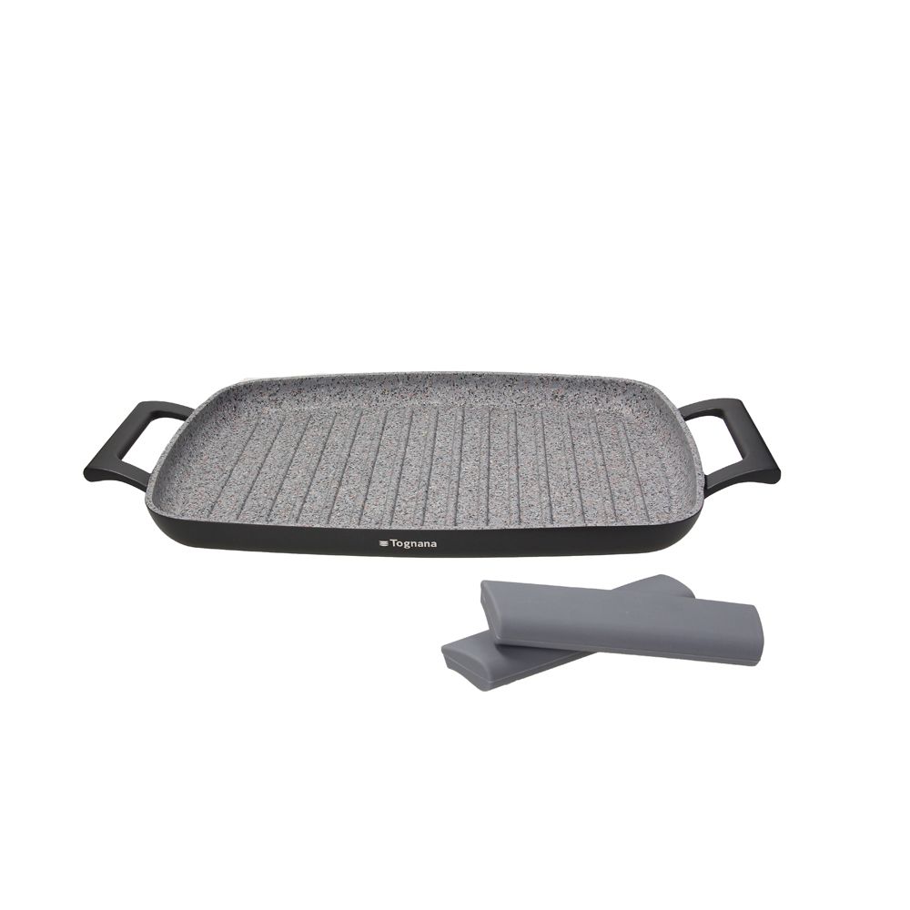 TOGNANA AMBIZIOSA Grill tava pravokutna 37×28 cm s dvije ručke i 2 silikonska držača aluminij siva